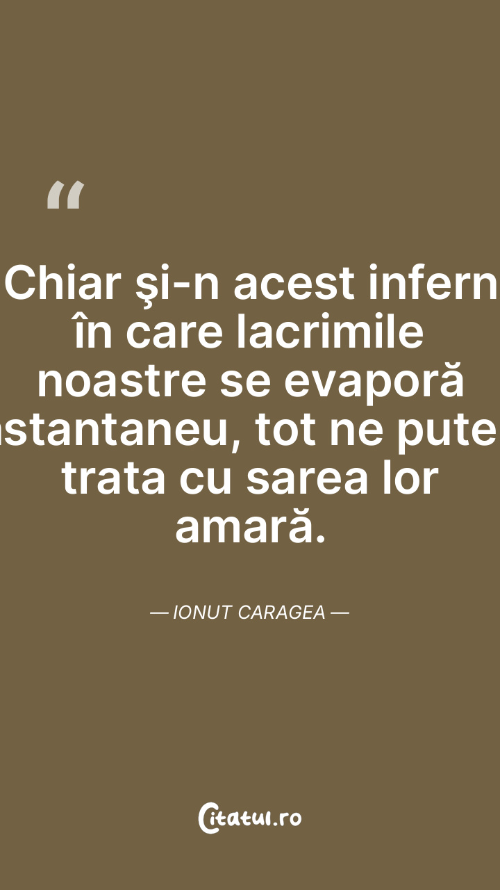 Chiar şi-n acest infern în care lacrimile noastre se evaporă instantaneu, tot ne putem trata cu sarea lor amară. Ionut Caragea