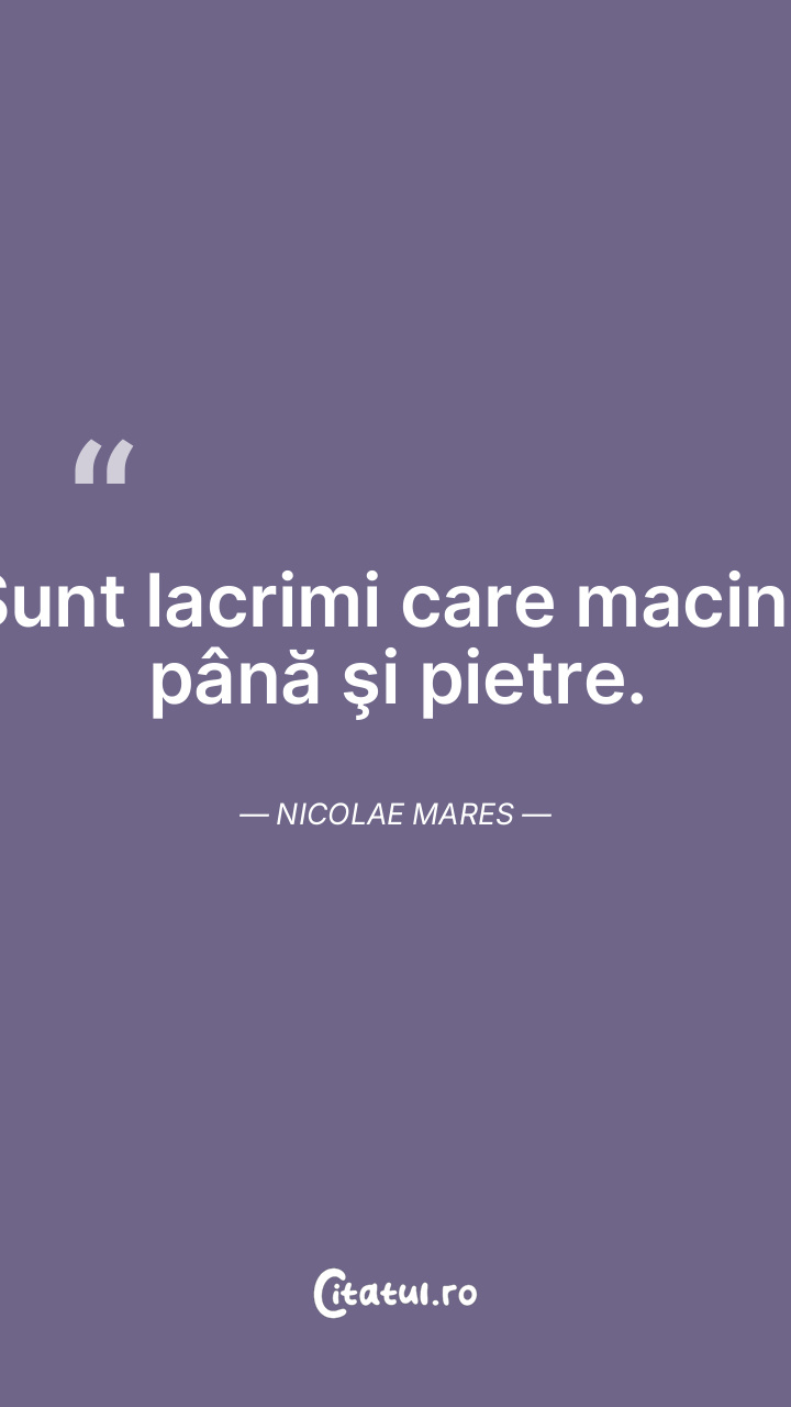 Sunt lacrimi care macină până şi pietre. Nicolae Mares
