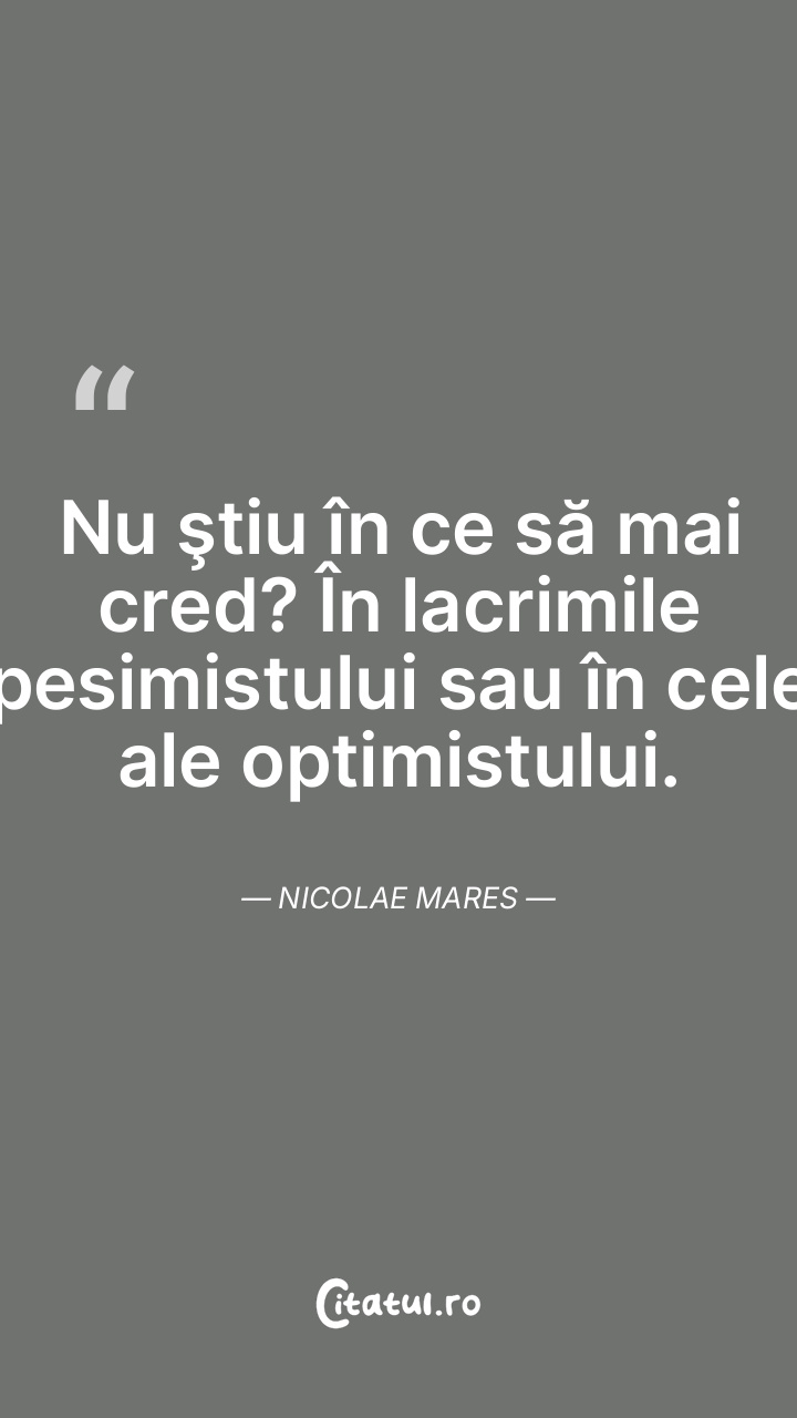 Nu ştiu în ce să mai cred? În lacrimile pesimistului sau în cele ale optimistului. Nicolae Mares