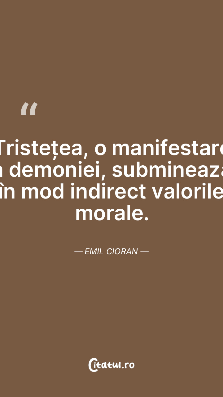 Tristețea, o manifestare a demoniei, subminează în mod indirect valorile morale. Emil Cioran