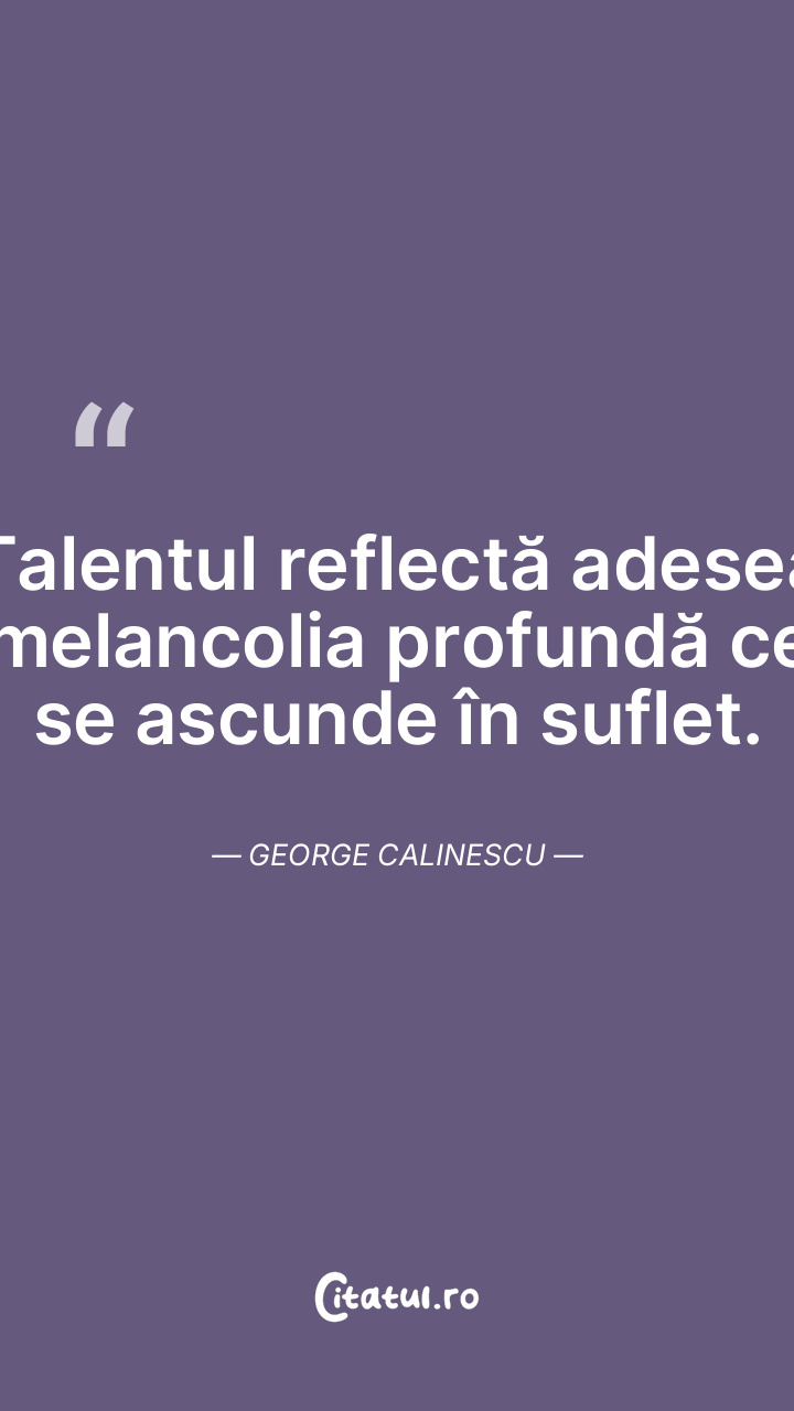 Talentul reflectă adesea melancolia profundă ce se ascunde în suflet. George Calinescu