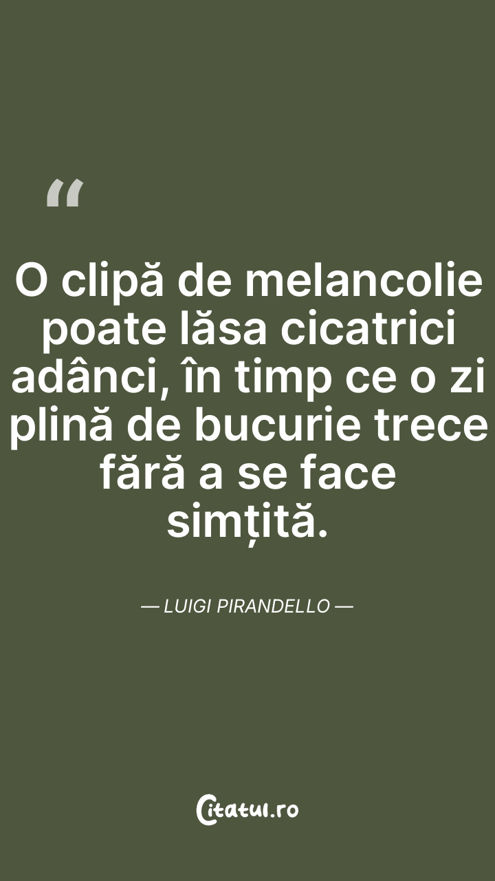 O clipă de melancolie poate lăsa cicatrici adânci, în timp ce o zi plină de bucurie trece fără a se face simțită. Luigi Pirandello