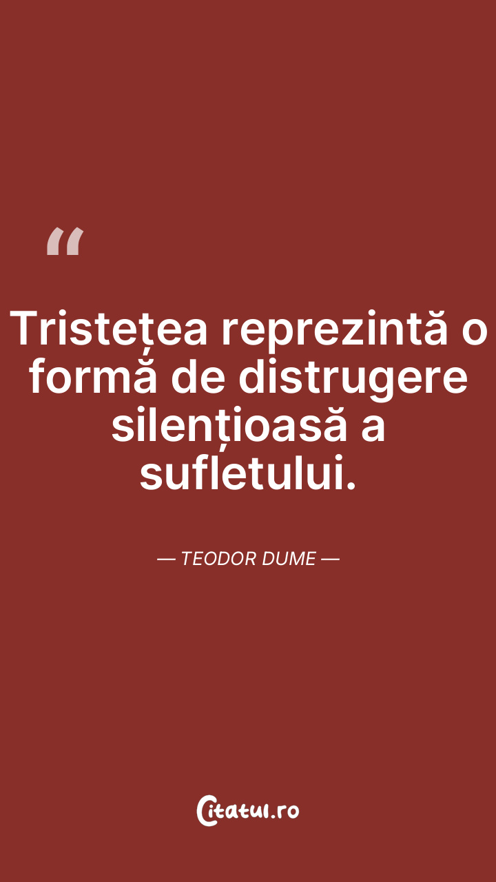 Tristețea reprezintă o formă de distrugere silențioasă a sufletului. Teodor Dume