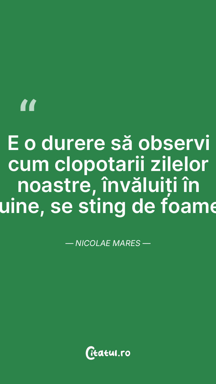 E o durere să observi cum clopotarii zilelor noastre, învăluiți în ruine, se sting de foame. Nicolae Mares