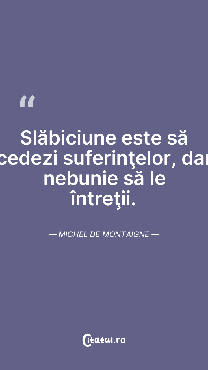 Slăbiciune este să cedezi suferinţelor, dar nebunie să le întreţii. Michel de Montaigne