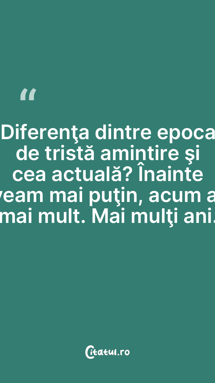 Diferenţa dintre epoca de tristă amintire şi cea actuală? Înainte aveam mai puţin, acum am mai mult. Mai mulţi ani.
