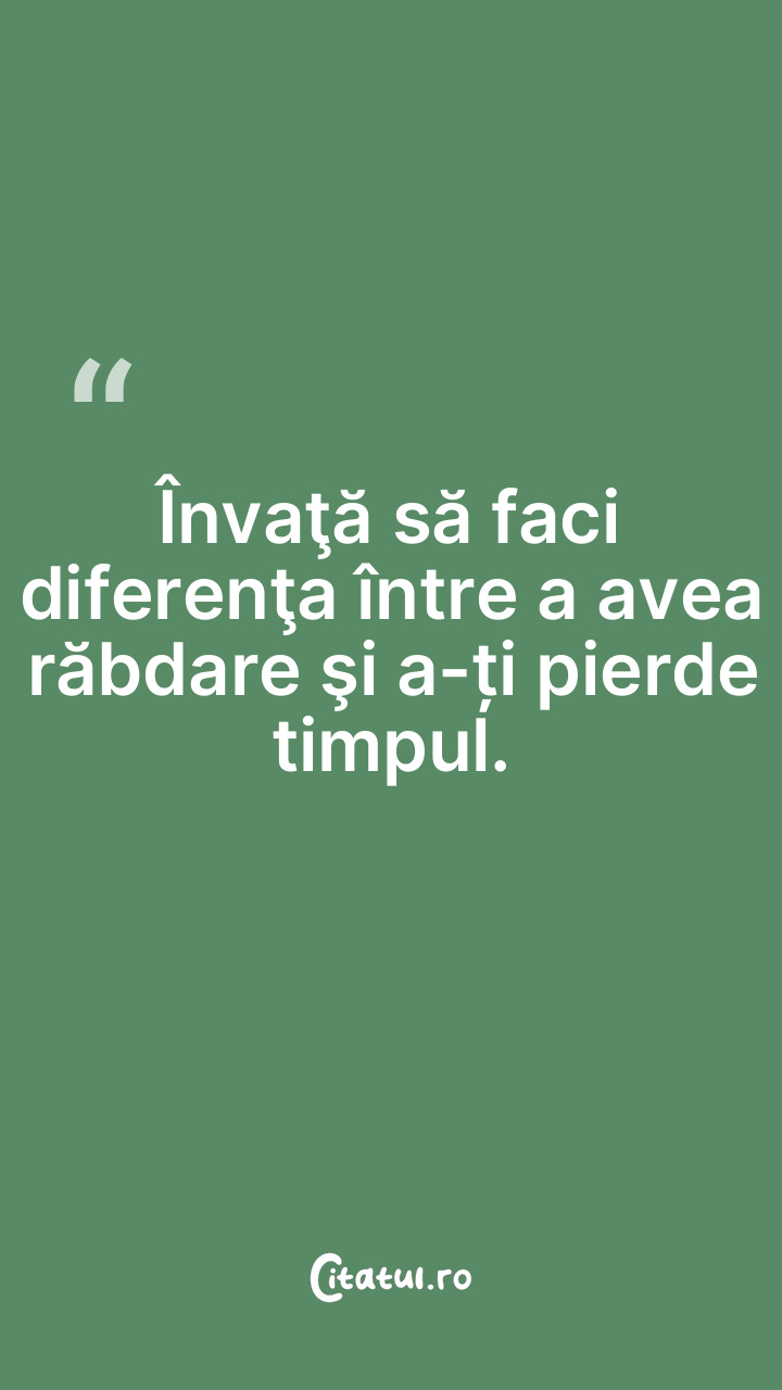 Învaţă să faci diferenţa între a avea răbdare şi a-ți pierde timpul.