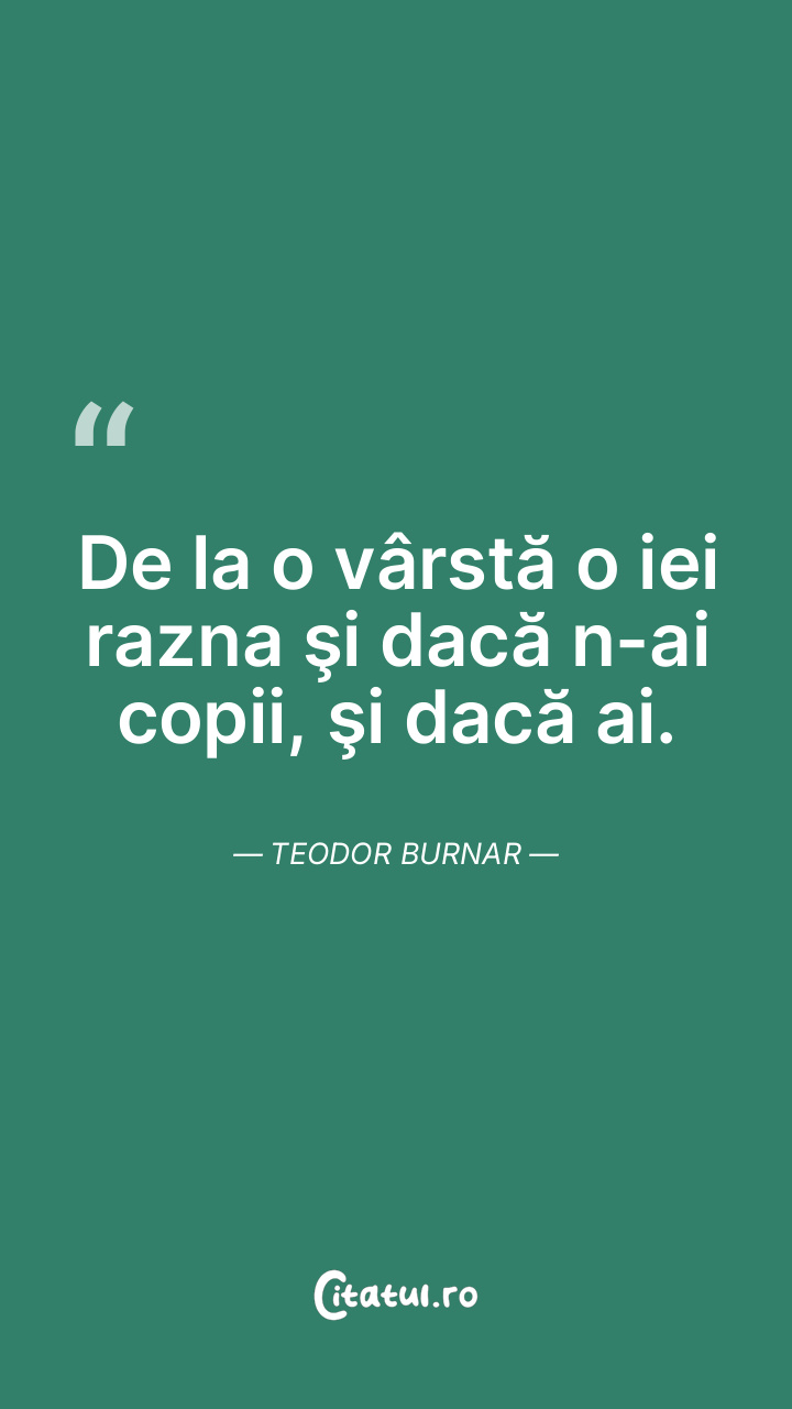 De la o vârstă o iei razna şi dacă n-ai copii, şi dacă ai. Teodor Burnar