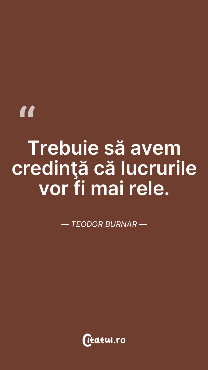 Trebuie să avem credinţă că lucrurile vor fi mai rele. Teodor Burnar