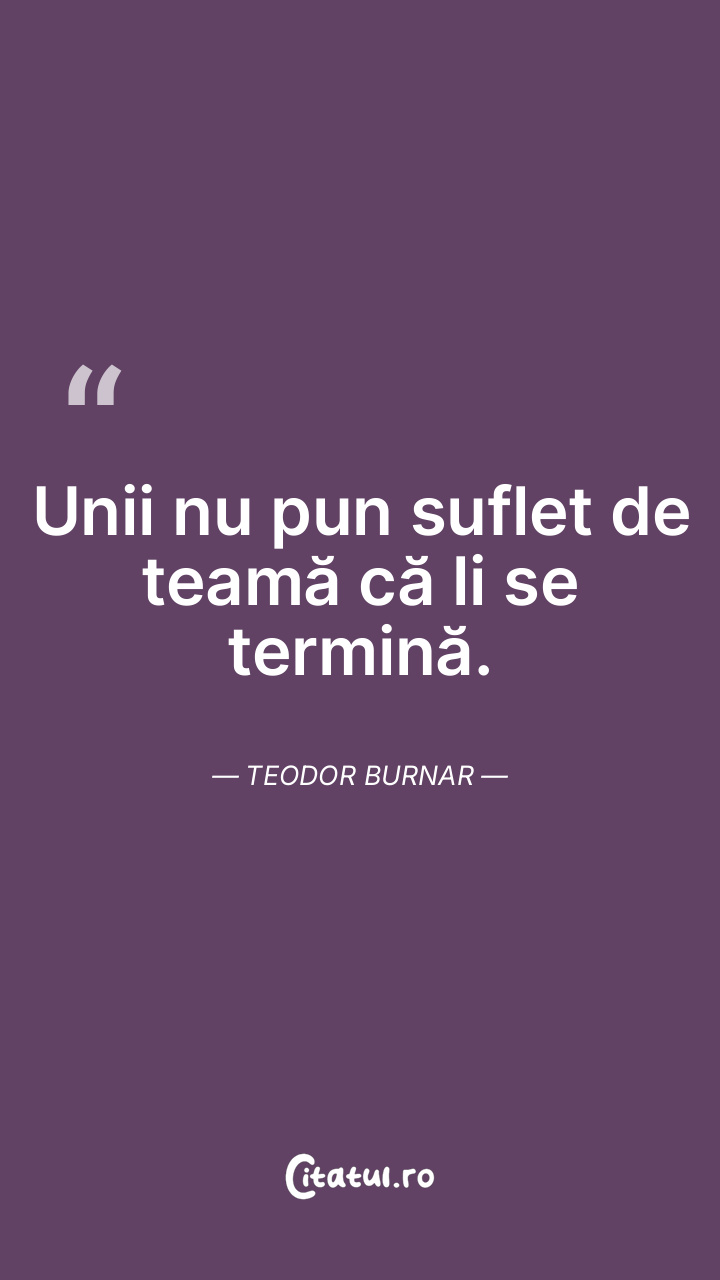 Unii nu pun suflet de teamă că li se termină. Teodor Burnar