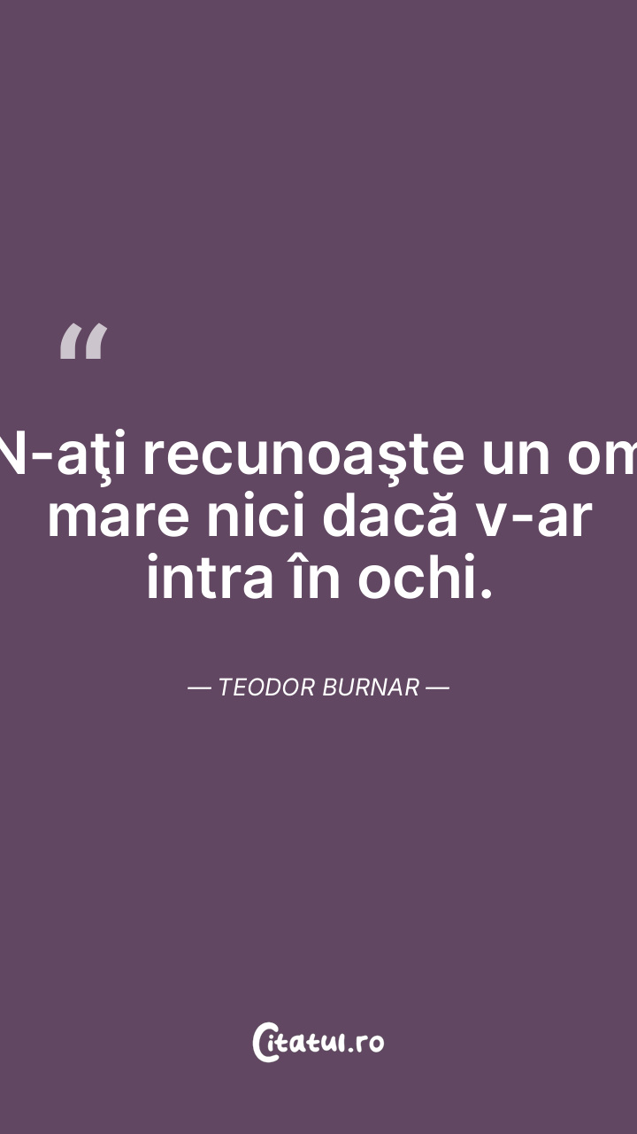 N-aţi recunoaşte un om mare nici dacă v-ar intra în ochi. Teodor Burnar
