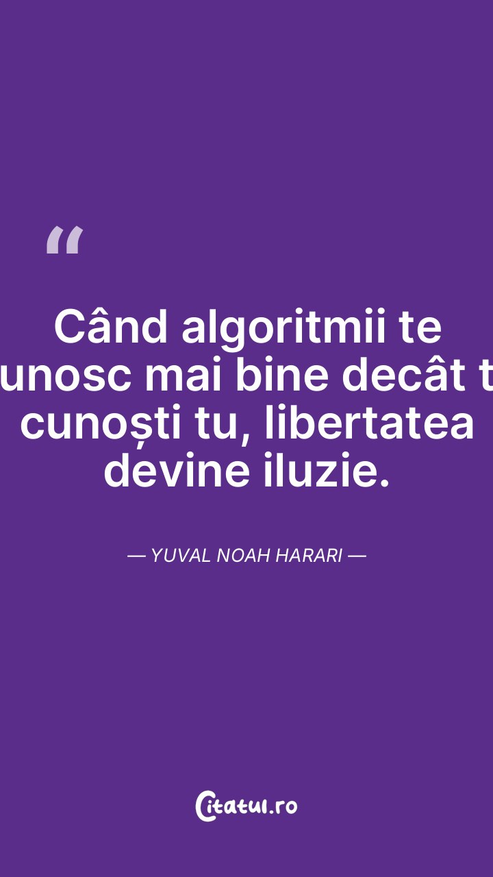 Când algoritmii te cunosc mai bine decât te cunoști tu, libertatea devine iluzie. Yuval Noah Harari