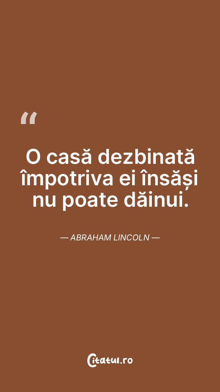 O casă dezbinată împotriva ei însăși nu poate dăinui. Abraham Lincoln