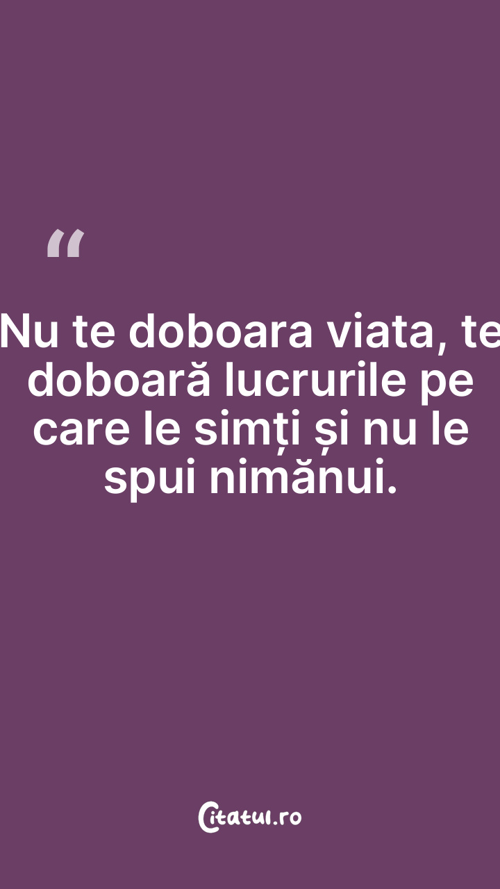 Νu te doboara viata, te doboară lucrurile pe care le simți și nu le spui nimănui.