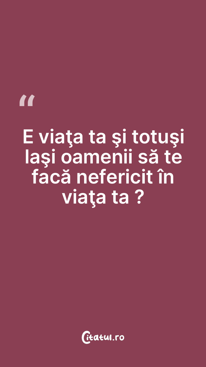 E viaţa ta şi totuşi laşi oamenii să te facă nefericit în viaţa ta ?