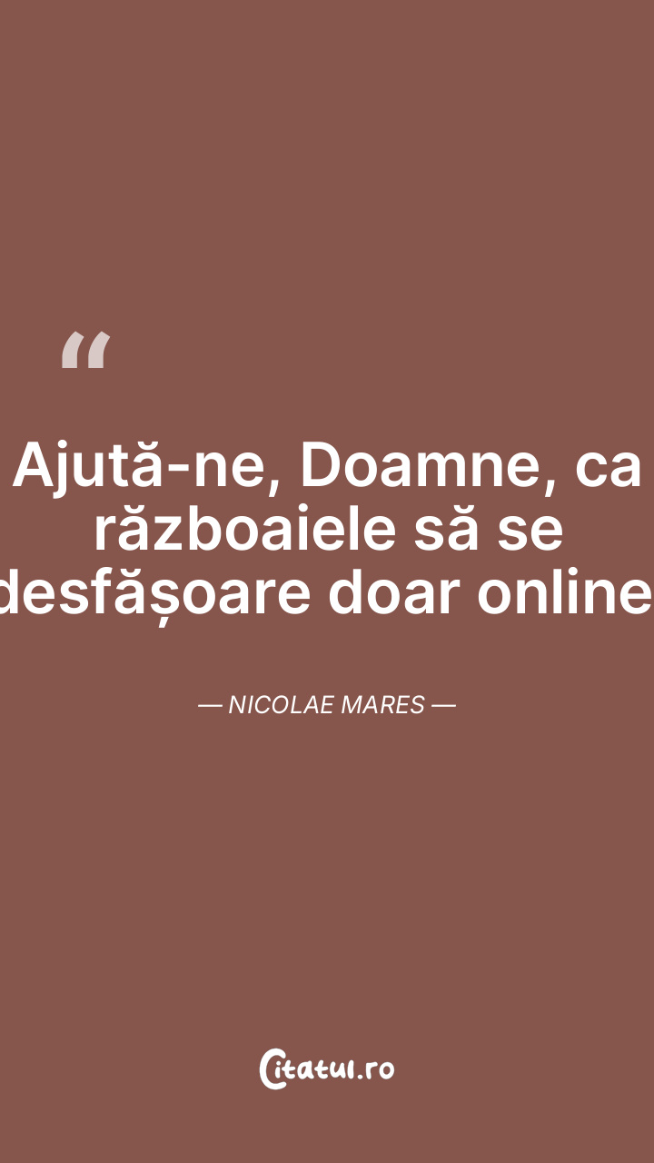 Ajută-ne, Doamne, ca războaiele să se desfășoare doar online! Nicolae Mares