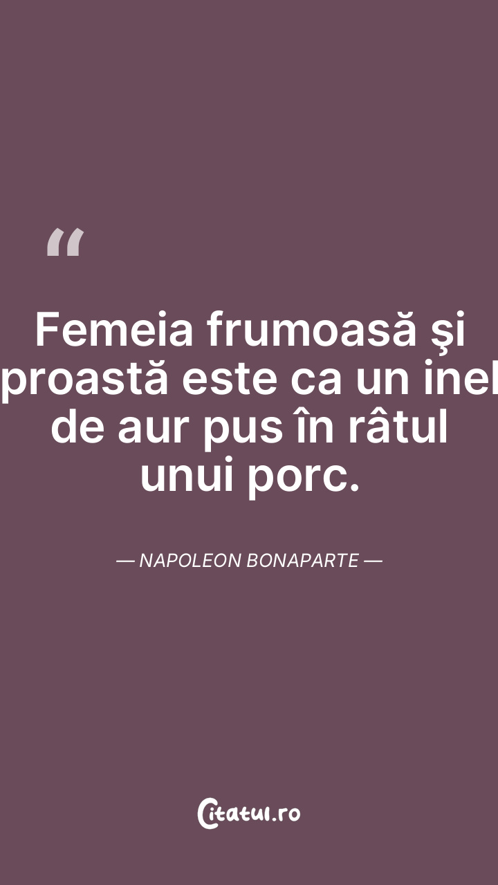 Femeia frumoasă şi proastă este ca un inel de aur pus în râtul unui porc. Napoleon Bonaparte