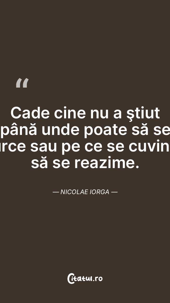 Cade cine nu a ştiut până unde poate să se urce sau pe ce se cuvine să se reazime. Nicolae Iorga
