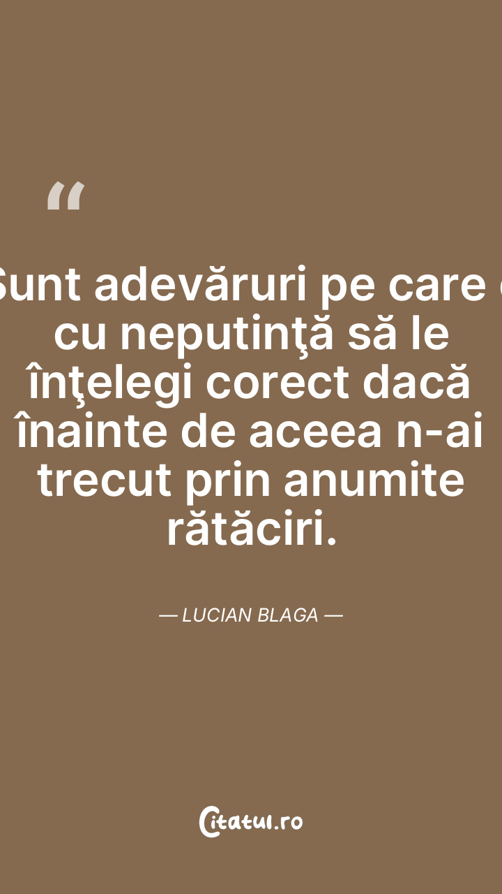 Sunt adevăruri pe care e cu neputinţă să le înţelegi corect dacă înainte de aceea n-ai trecut prin anumite rătăciri. Lucian Blaga
