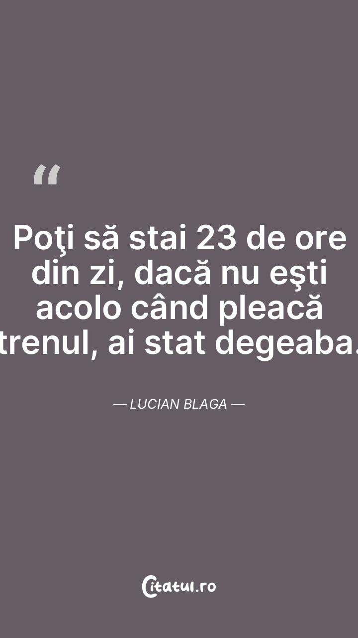 Poţi să stai 23 de ore din zi, dacă nu eşti acolo când pleacă trenul, ai stat degeaba. Lucian Blaga
