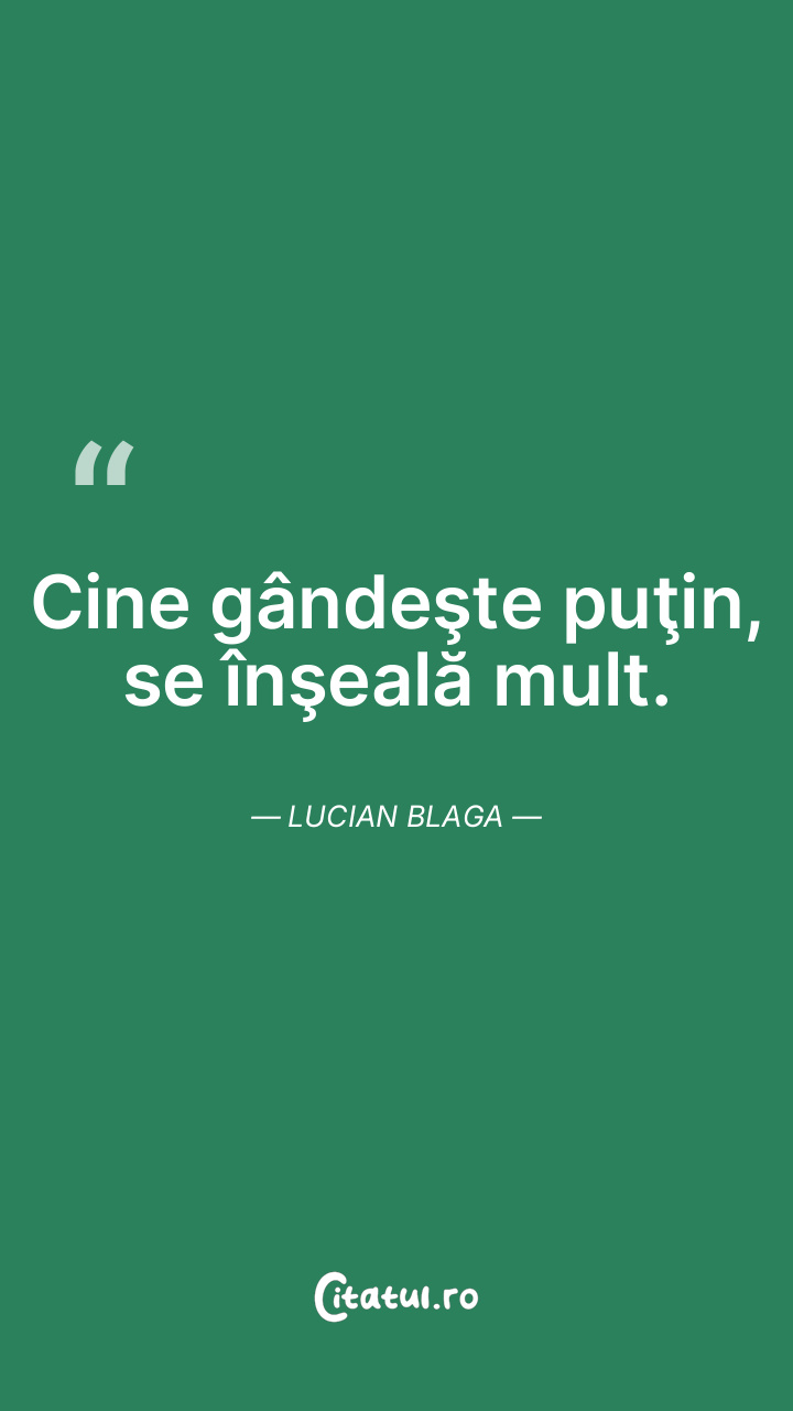 Cine gândeşte puţin, se înşeală mult. Lucian Blaga
