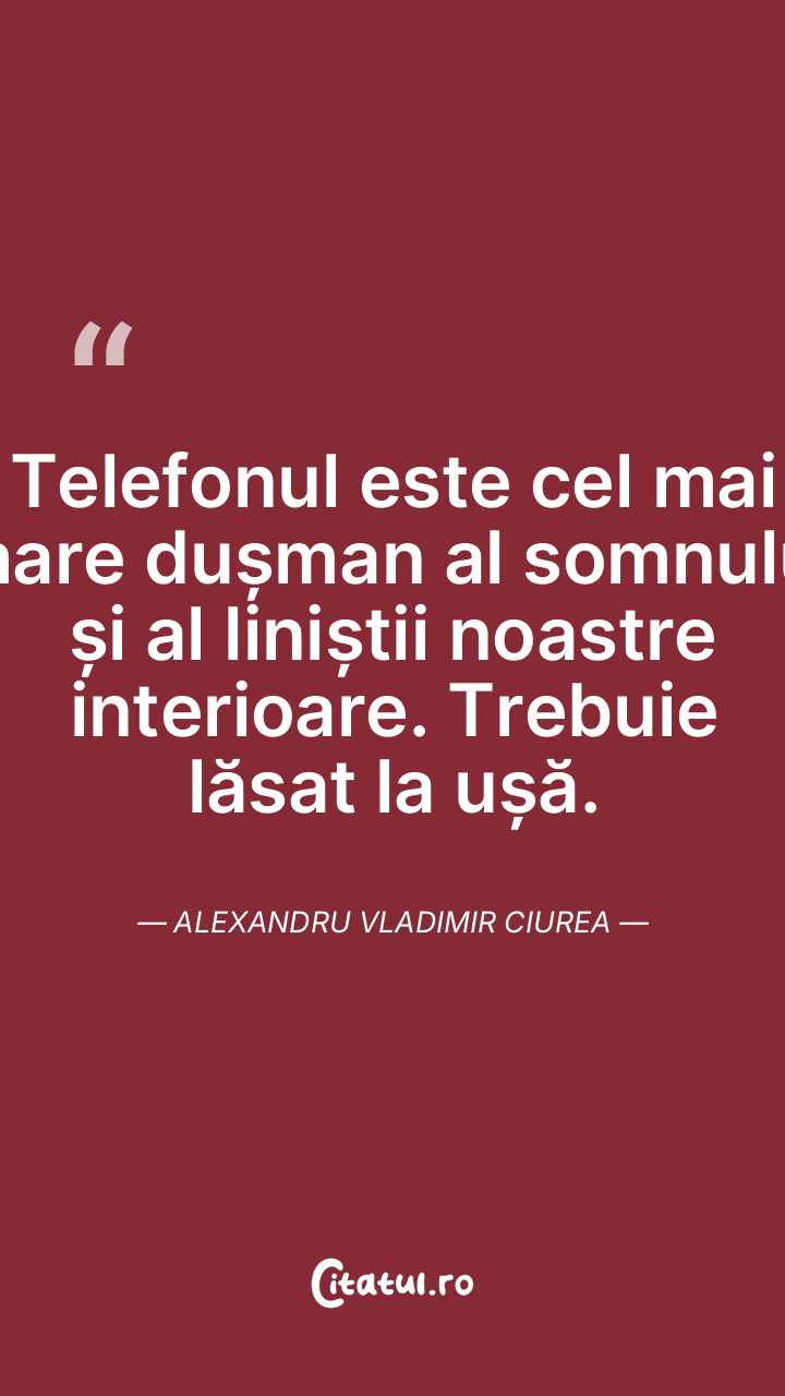 Telefonul este cel mai mare dușman al somnului și al liniștii noastre interioare. Trebuie lăsat la ușă. Alexandru Vladimir Ciurea