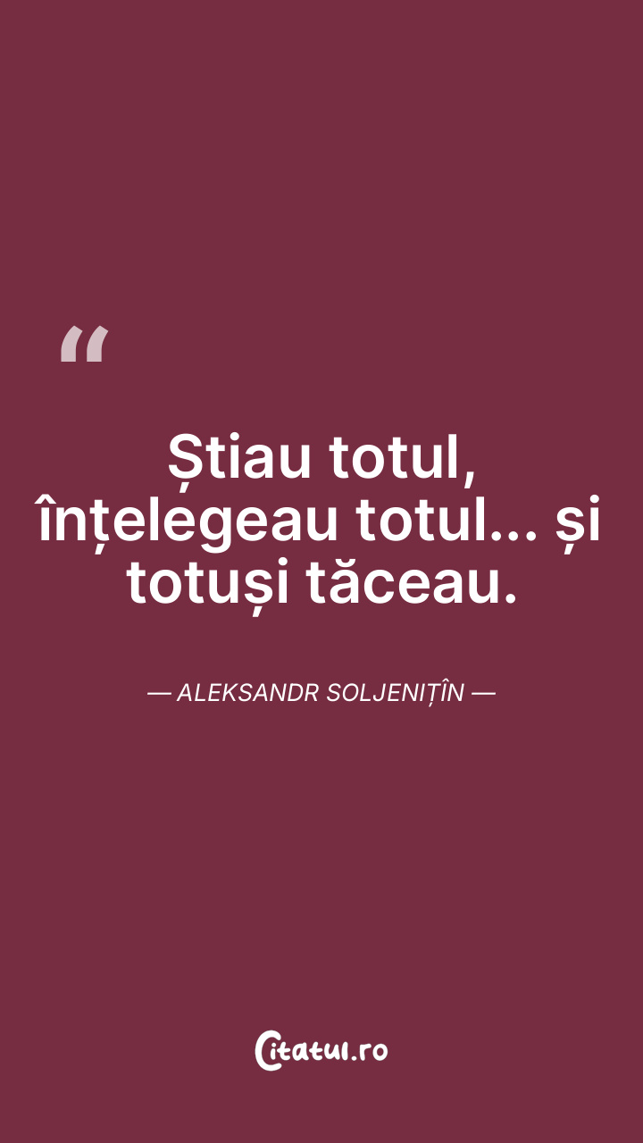 Știau totul, înțelegeau totul... și totuși tăceau. Aleksandr Soljenițîn