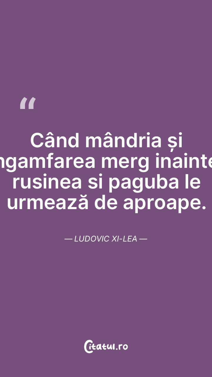 Când mândria și ingamfarea merg inainte, rusinea si paguba le urmează de aproape. Ludovic XI-lea