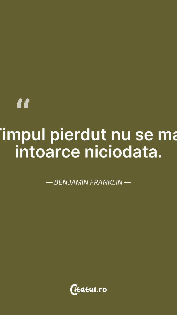 Timpul pierdut nu se mai intoarce niciodata. Benjamin Franklin