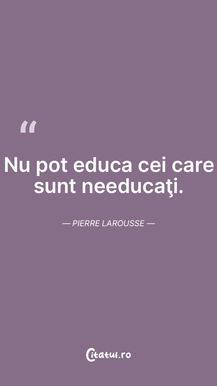 Nu pot educa cei care sunt needucaţi. Pierre Larousse