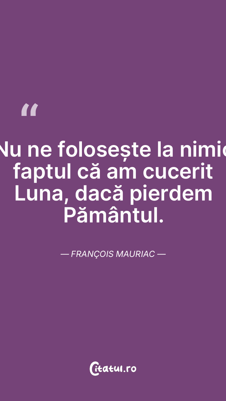 Nu ne folosește la nimic faptul că am cucerit Luna, dacă pierdem Pământul. François Mauriac
