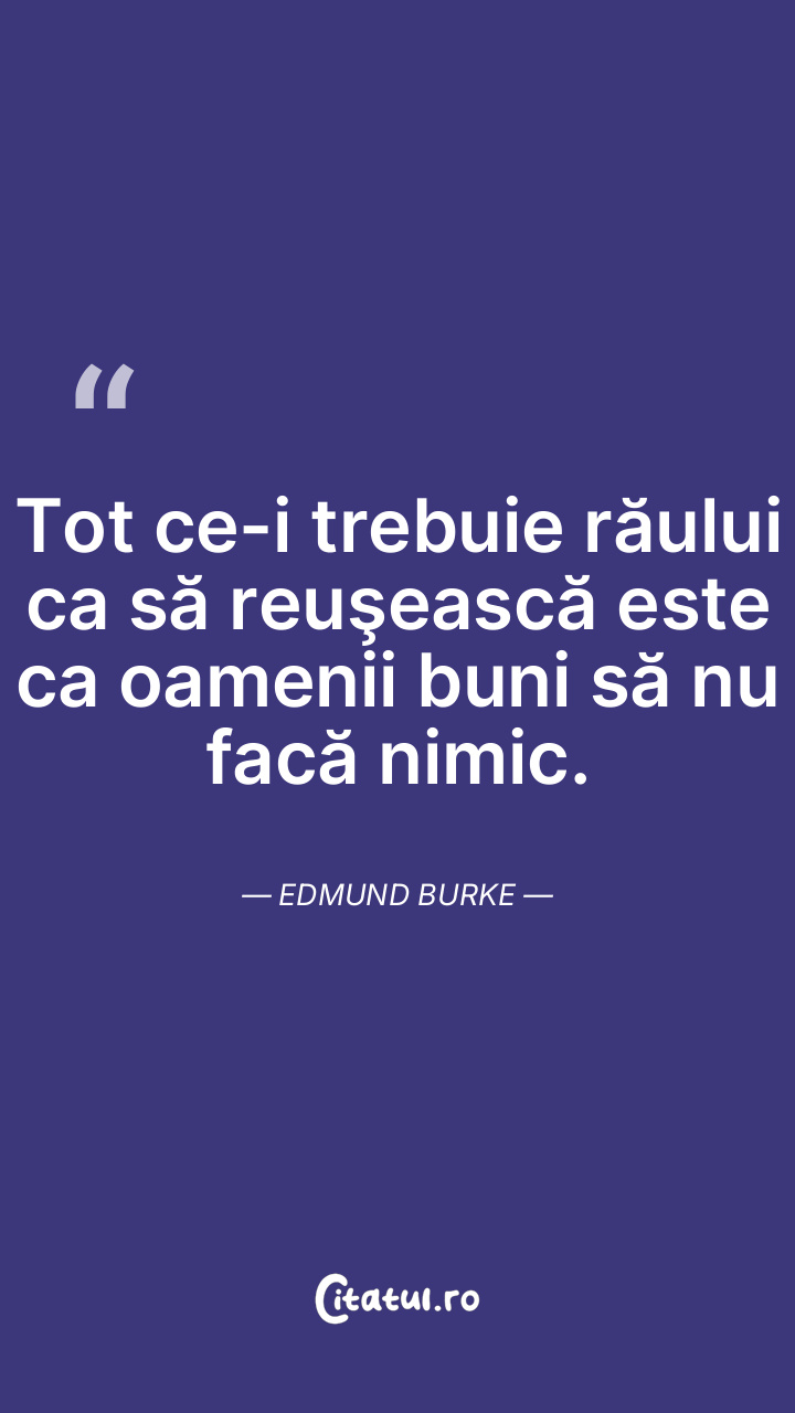 Tot ce-i trebuie răului ca să reuşească este ca oamenii buni să nu facă nimic. Edmund Burke