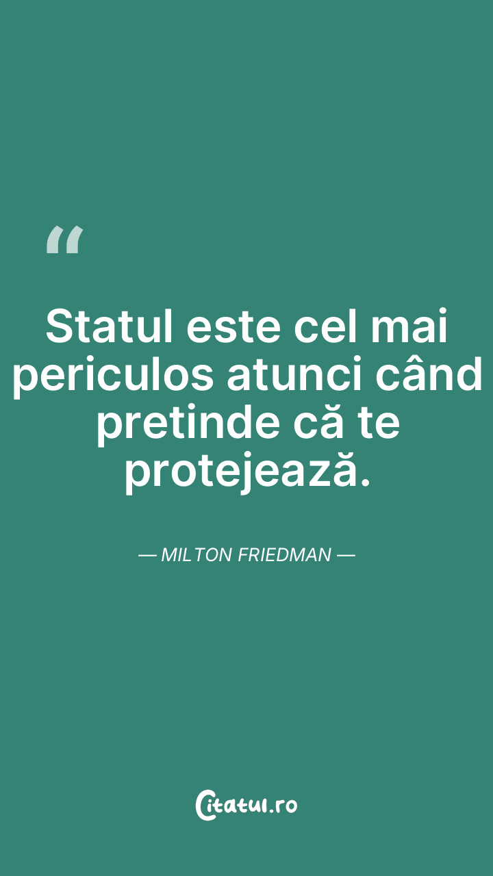 Statul este cel mai periculos atunci când pretinde că te protejează. Milton Friedman