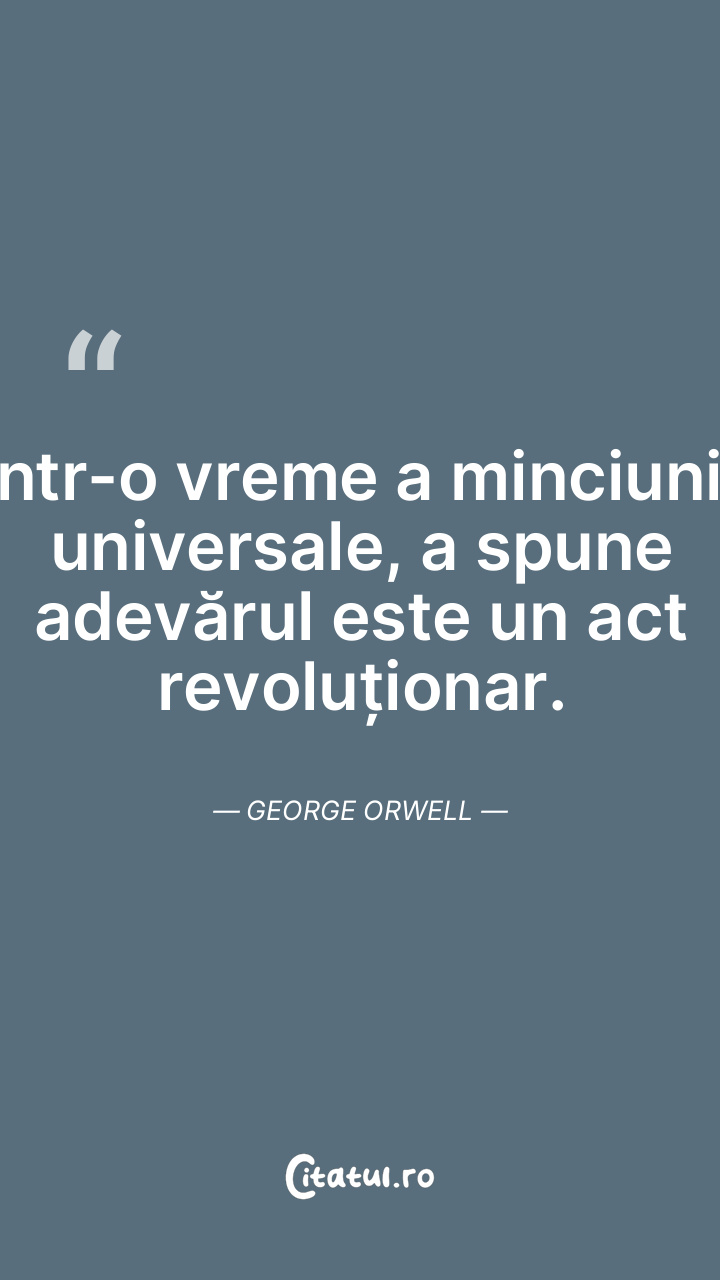 Într-o vreme a minciunii universale, a spune adevărul este un act revoluționar. George Orwell