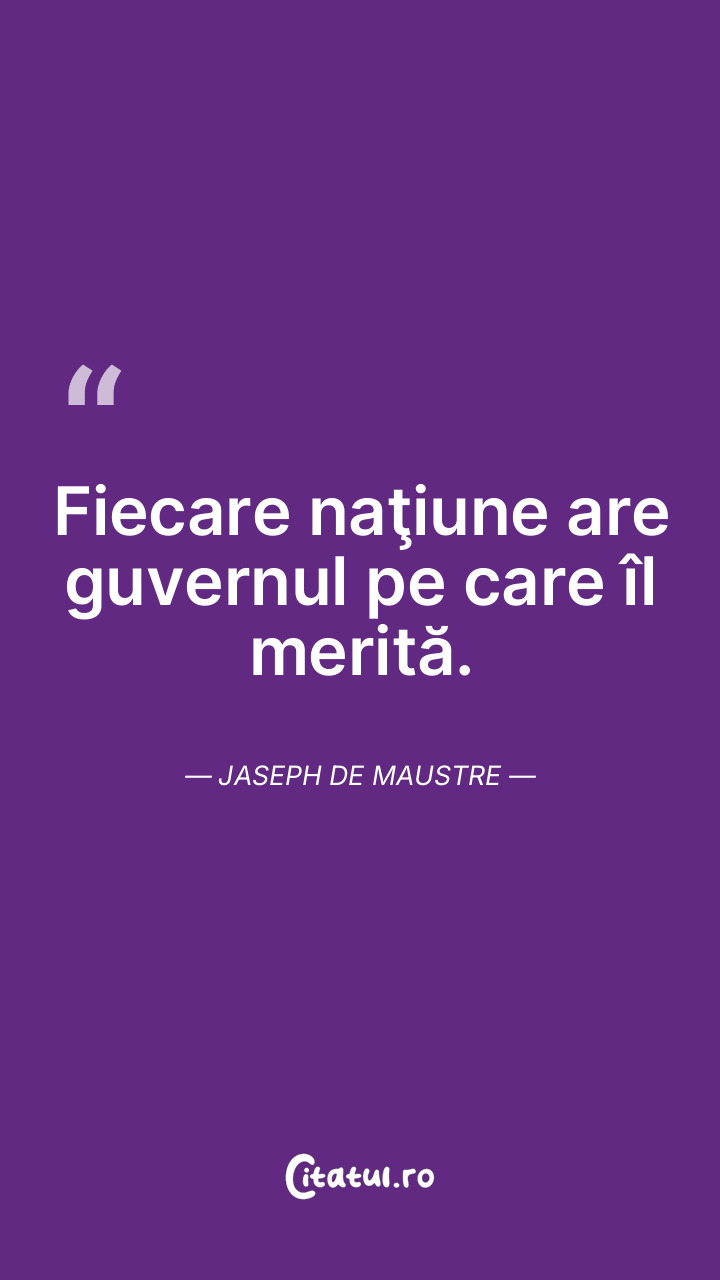 Fiecare naţiune are guvernul pe care îl merită. Jaseph de Maustre
