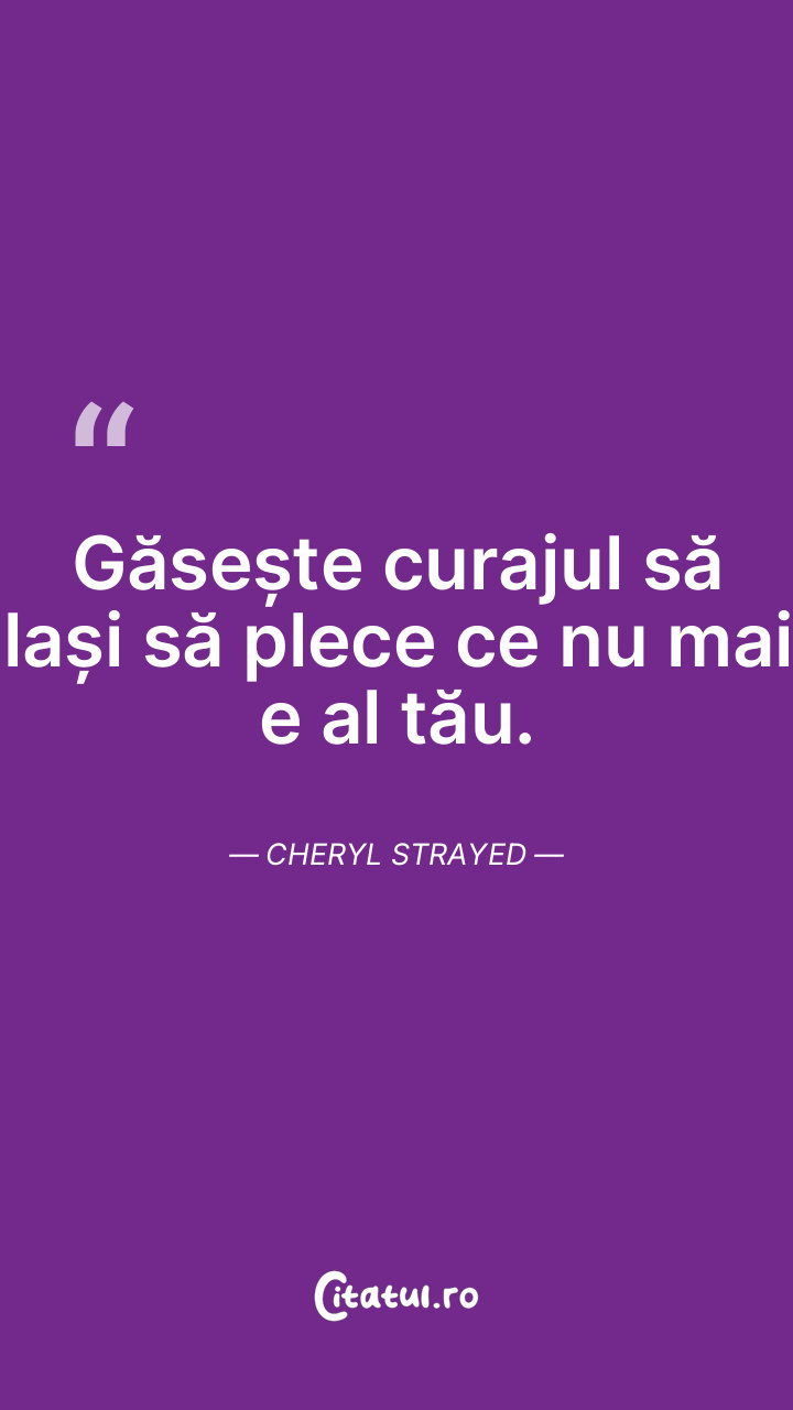 Găsește curajul să lași să plece ce nu mai e al tău. Cheryl Strayed