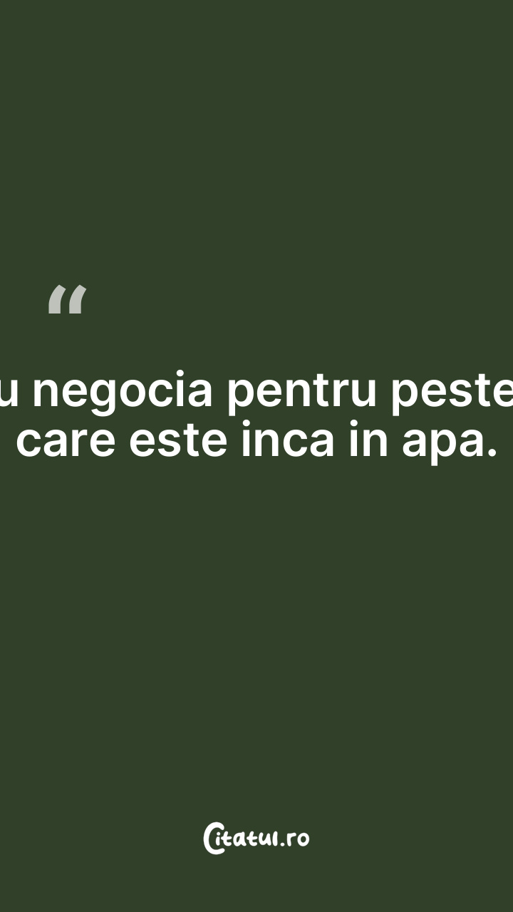 Nu negocia pentru pestele care este inca in apa. ...