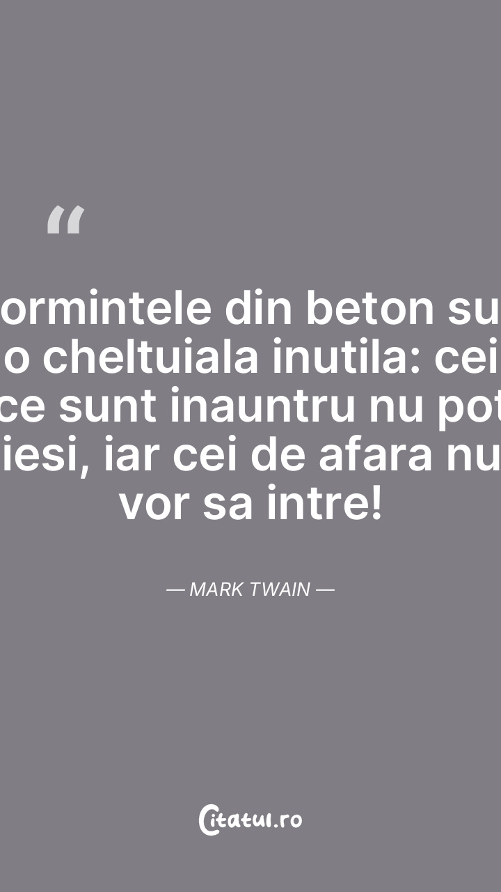 Mormintele din beton sunt o cheltuiala inutila: cei ce sunt inauntru nu pot iesi, iar cei de afara nu vor sa intre! Mark Twain