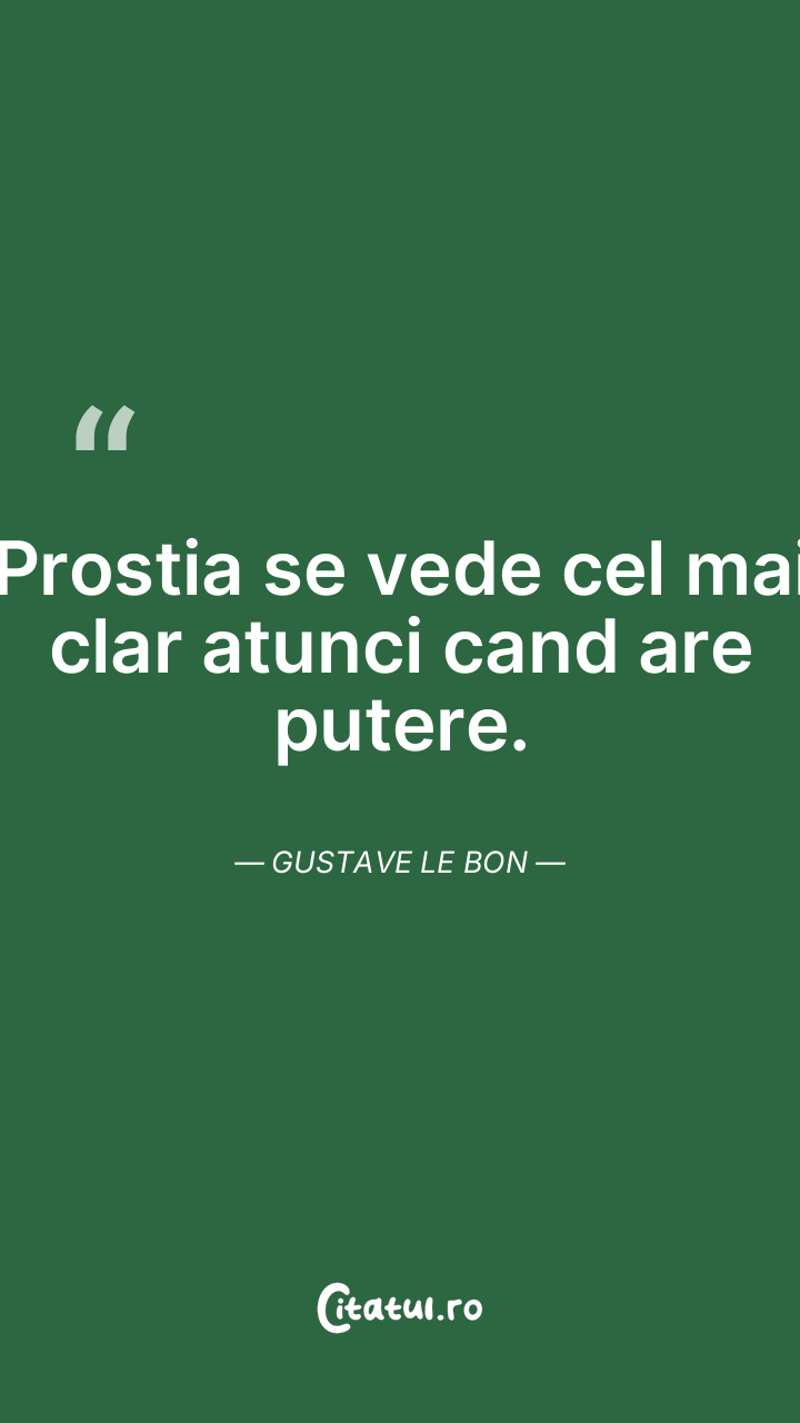 Prostia se vede cel mai clar atunci cand are putere. Gustave Le Bon