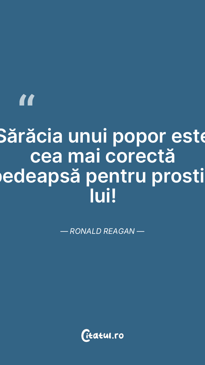 Sărăcia unui popor este cea mai corectă pedeapsă pentru prostia lui! Ronald Reagan