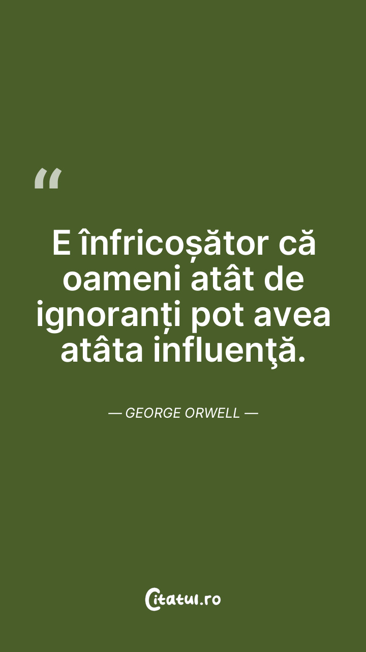 E înfricoșător că oameni atât de ignoranți pot avea atâta influenţă. George Orwell