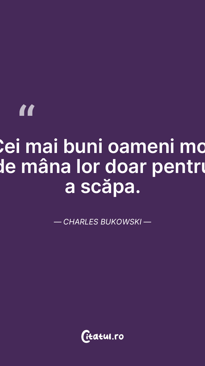 Cei mai buni oameni mor de mâna lor doar pentru a scăpa. Charles Bukowski