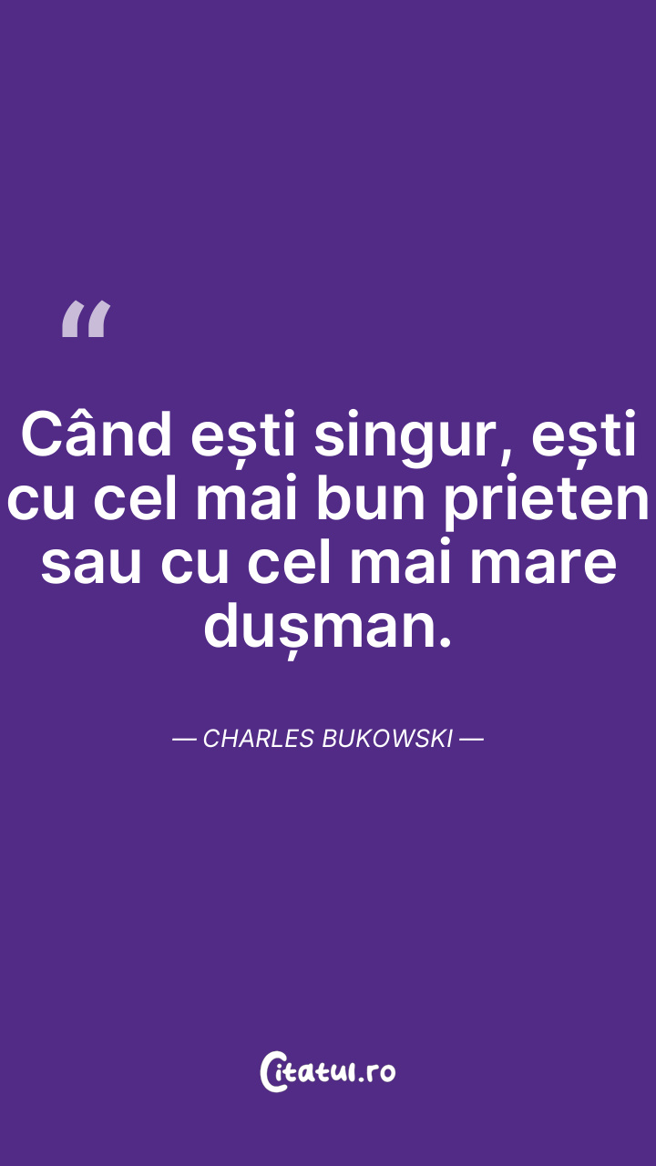 Când ești singur, ești cu cel mai bun prieten sau cu cel mai mare dușman. Charles Bukowski