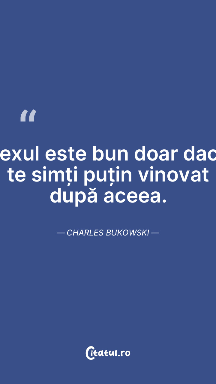 Sexul este bun doar dacă te simți puțin vinovat după aceea. Charles Bukowski