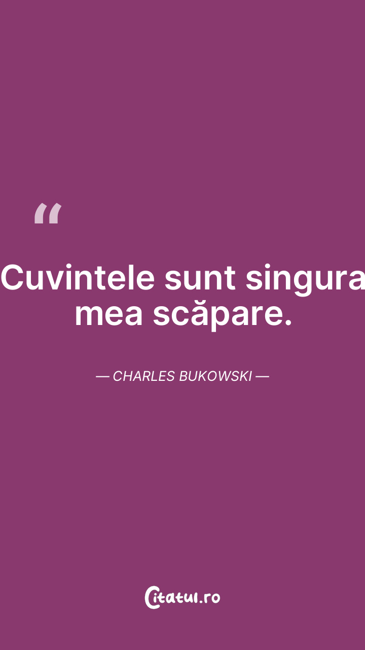 Cuvintele sunt singura mea scăpare. Charles Bukows...