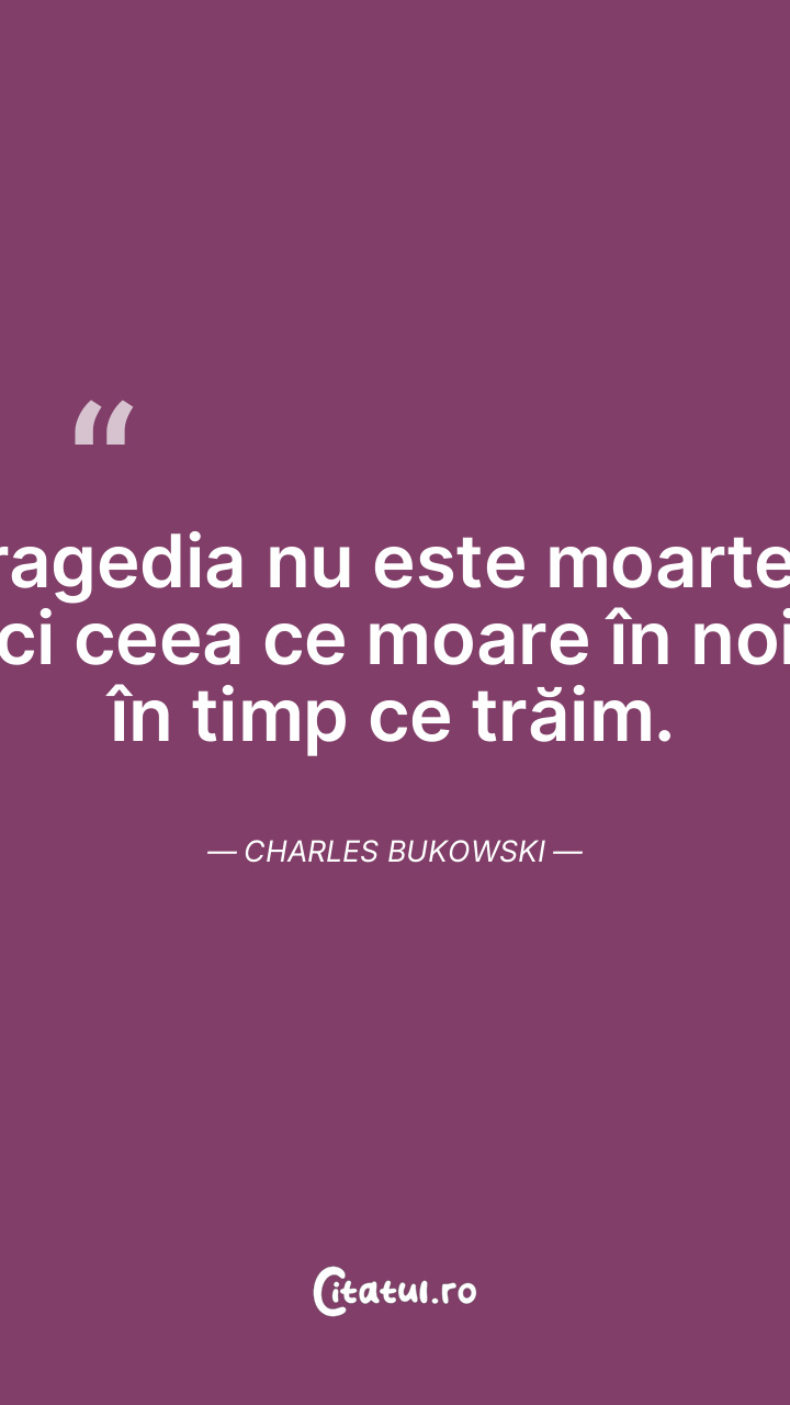 Tragedia nu este moartea, ci ceea ce moare în noi în timp ce trăim. Charles Bukowski