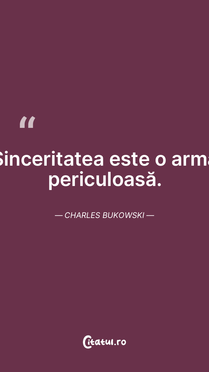 Sinceritatea este o armă periculoasă. Charles Buko...