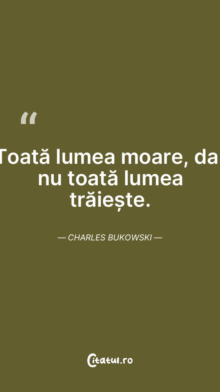 Toată lumea moare, dar nu toată lumea trăiește. Charles Bukowski