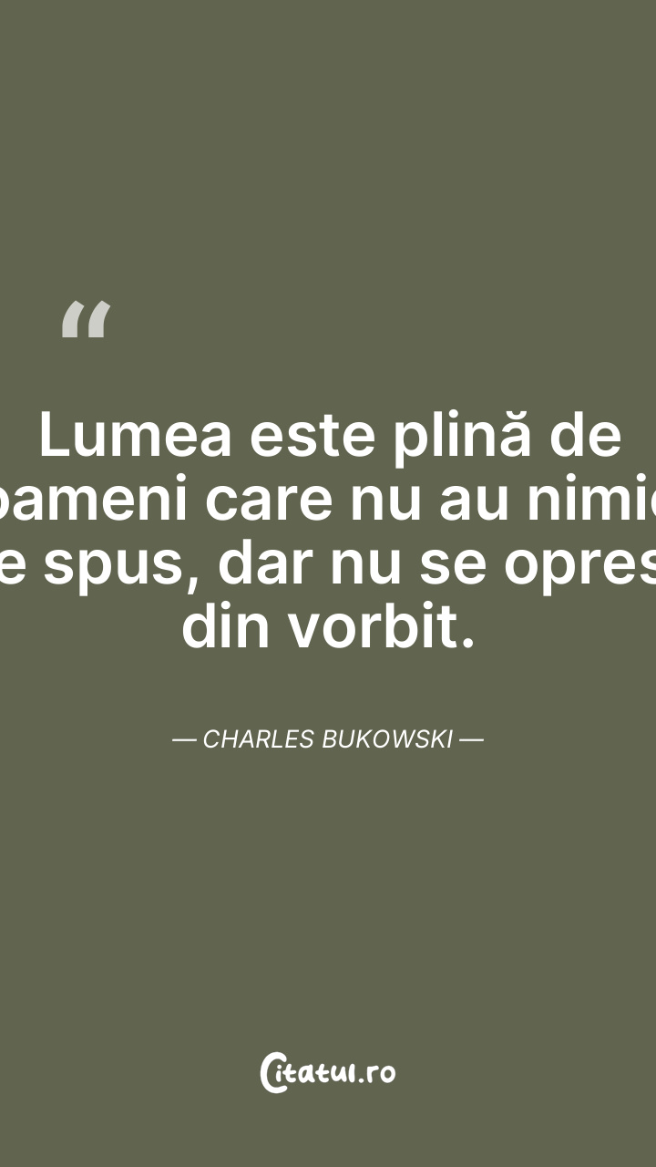 Lumea este plină de oameni care nu au nimic de spus, dar nu se opresc din vorbit. Charles Bukowski