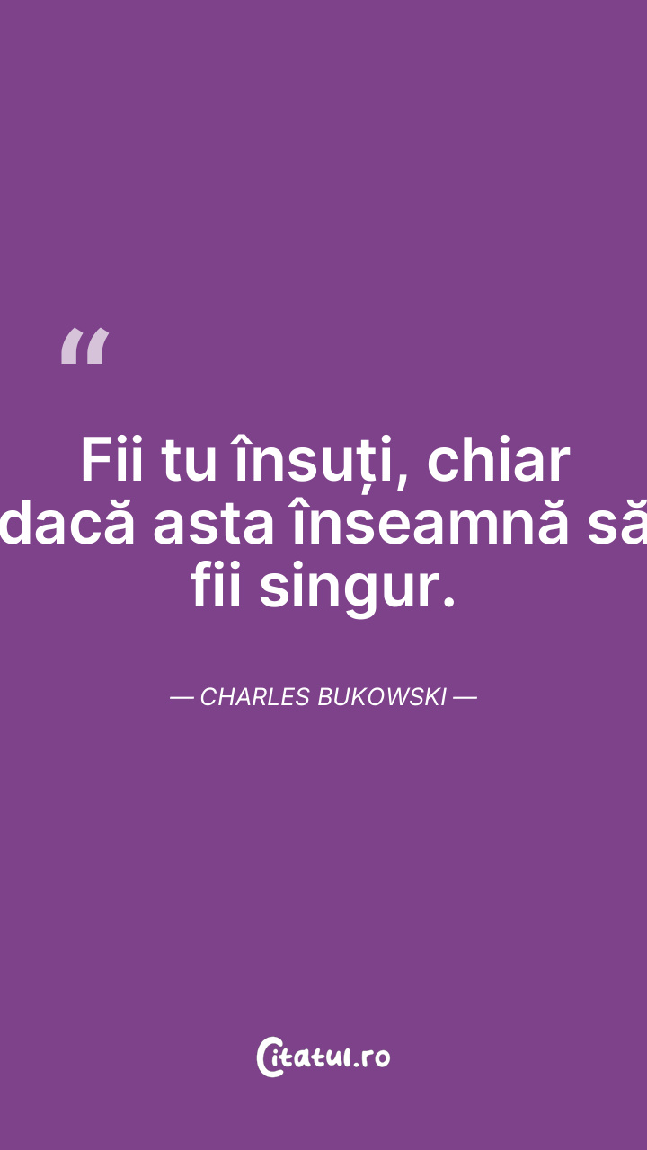 Fii tu însuți, chiar dacă asta înseamnă să fii singur. Charles Bukowski